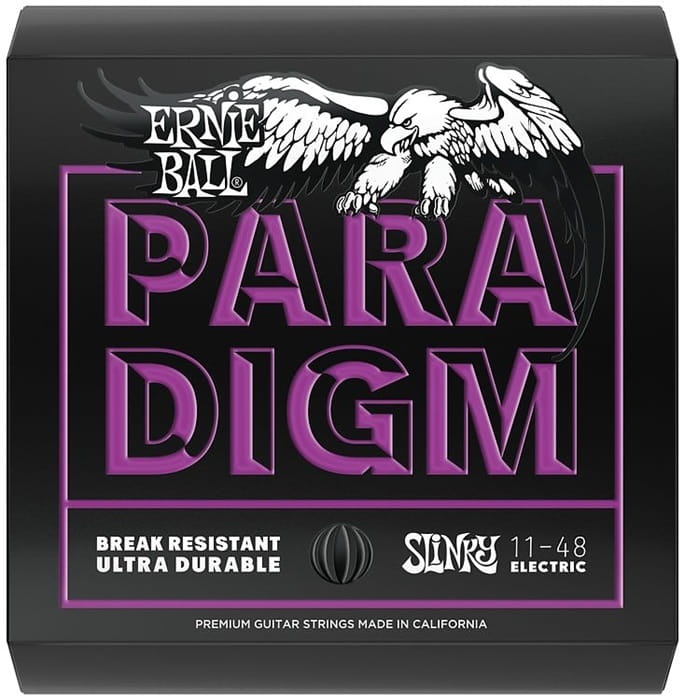 Die Saiten der Paradigm-Serie des angesehenen Brands Ernie Ball gehören ohne Zweifel mit zu den fortschrittlichsten Exemplaren, die gegenwärtig auf dem Markt zu finden sind. Sie verwenden die patentierte Technologien wie beispielsweise RPS und EVERLAST (jede Saite hat eine 4 Nanometer dicke Beschichtung, mehr als 20.000 Mal dünner als ein menschliches Haar. welche vor Schmutz und Korrosion schützt, für die Hand nicht wahrnehmbar ist und sich so gut wie überhaupt nicht abnutzt). Darüber hinaus sind Ernie Balls Paradigm-Saiten dank der Verwendung haltbarster Legierungen enorm rissbeständig.
