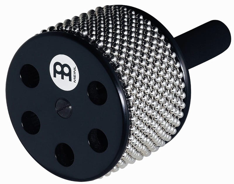 Diese Turbo Cabasa von Meinl besitzt insgesamt 10 Soundöffnungen (je 5 an jeder Seite) und bietet dementsprechend einen voluminöseren Klang. So kann sich die Cabasa letztlich auch besser im musikalischen Background bemerkbar machen und ihre Kraft entfalten.